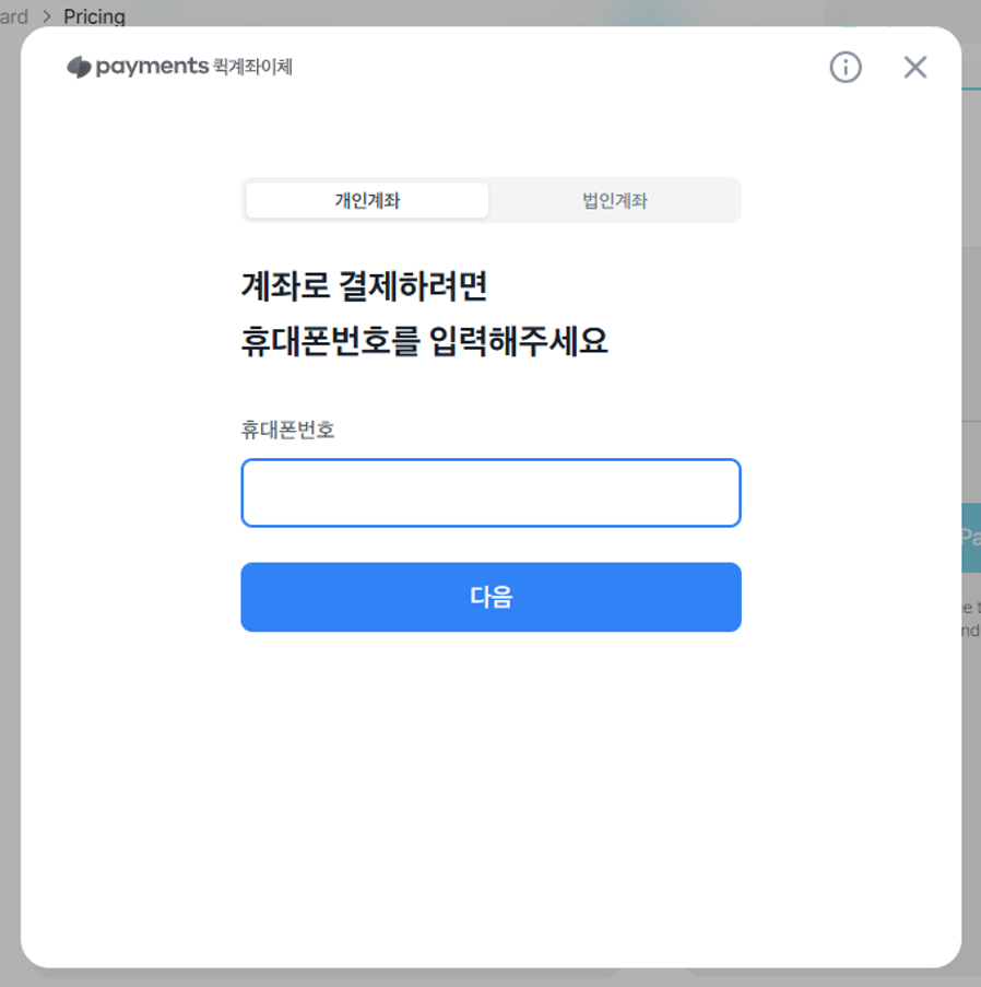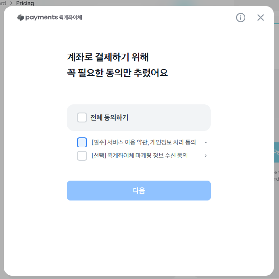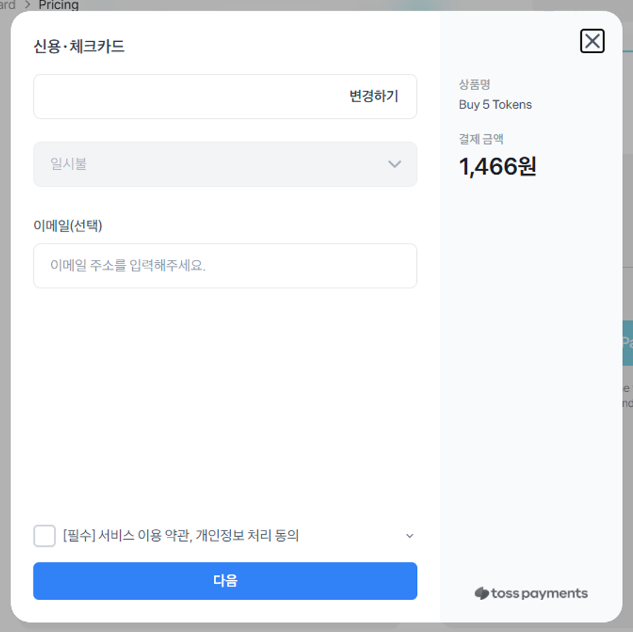 ② 정보를 입력한 후 다음을 클릭하여 결제를 진행합니다.