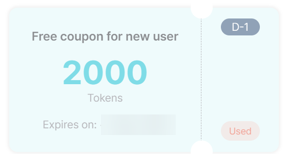 쿠폰 사용 내역은 'Token Usage History'에서 확인하실 수 있습니다.